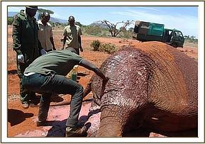 Treatment of an elephant bull at Rukinga ranch, 23rd Oct