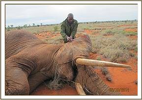 A 3ml Dan-Inject dart containing 18mg Etorphine Hcl was prepared and the elephant was darted from a vehicle using a Dan inject dart rifle. The elephant had to be darted twice and was immobilized after 10 minutes following the second darting. He fell near Dakota airstrip and had to be turned over to expose the injured flank.