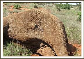 This orphan was brought into the stockade after being rescued from Galana within Tsavo East Park. She continued to do well until her condition started deteriorating and she was unable to walk for long periods. She was treated at the stockade but she succumbed days later.