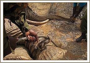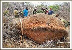Water was poured to keep him cool and he was assisted onto his feet using ropes tied to one of the tusk.