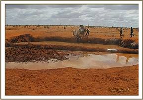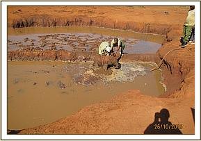 This temporary water hole was created by leakages along the Mzima-Mombasa water pipeline and subsequently made deeper by elephants digging at the site. It provides water for elephants staying near the park headquarters during the dry season when most of the water holes are dry.