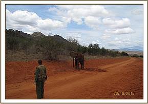 A report was received from Ngulia Rhino IPZ of an injured elephant seen near the road at Buffalo wallows water hole struggling to stand.