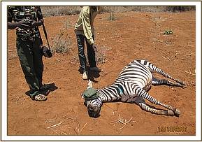 The Zebra was reported by the DSWT desnaring teams patrolling the area. The wire snare was long and dragging along the ground, impeding movement. She was easily traced as some people were left tracking her.