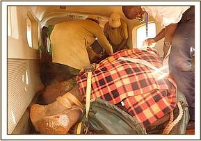 Due to his age the calf was then airlifted to the Nairobi nursery for care. He was diagnosed with poor nutrition due to the prevailing drought conditions in Tsavo. Prognosis is guarded.