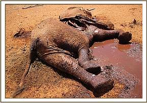 A report was made by KWS teams of one Elephant calf that was lying down and unable to stand up near a road at Irima area of Tsavo East.