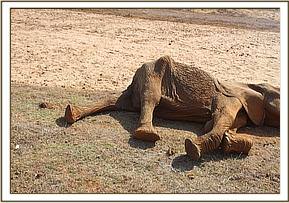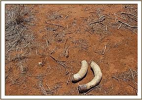 The first carcass was lying on the right flank and at an advanced level of decomposition. All flesh had rotted away and only skin with the skeletal structure and organs were left. The Tusks were removed and taken for safe custody. No meaningful autopsy could be undertaken on the carcass and tentative cause of death was put as drought related starvation.