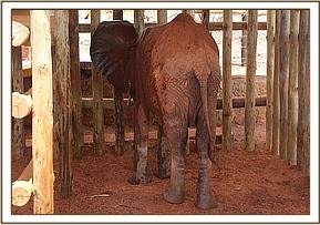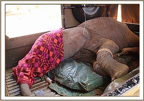 The vet team together with the Voi stockade team rushed to the area to find the young Elephant standing but emaciated. The calf was covered with a blanket, captured and taken to Voi stockade where administration of antibiotics, Vitamin B12 complex and colvasone was instituted.