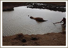The carcass was lying inside the Kanderi water collection pond where Elephants drink water. The carcass was pulled out of the water and examined.