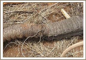 Another elephant with a snare this time on the trunk was also treated at Taita Salt Lick Sanctuary. The snare was not very tight. Some slight injury had been caused round the trunk. It was removed and the injury treated topically.