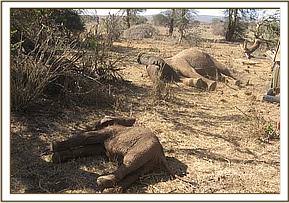 Two young elephant calves (both about three weeks old) were rescued at the Satao water hole