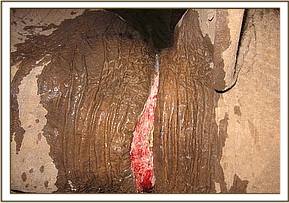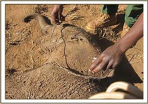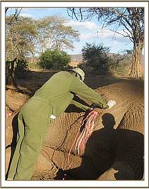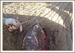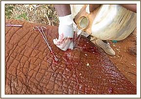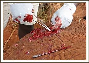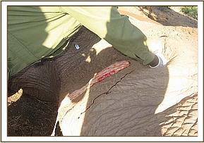 Arrow heads were retrieved from two elephants. One christened ‘Irima’ that is amongst those released to the wild after several years of rehabilitation was treated at Ngutuni sanctuary. The arrow head was deeply embedded in the left thigh and required some radical surgery to remove.