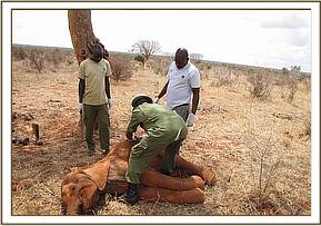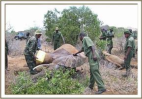 Examination of a sickelephant bull in Amboseli, 18th September