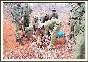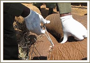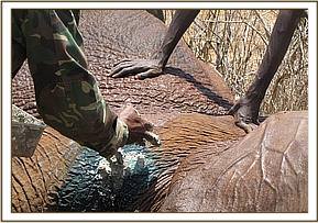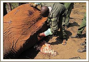 Treatment of an injured elephant cow at Mgeno ranch, 15th Sept
