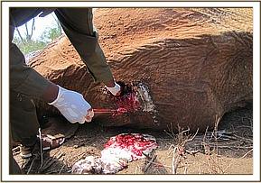 Examination and euthanasia of an injured elephant cow, 22nd September