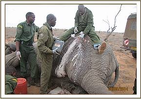 This report describes case intervention of a male elephant at Satao area - Tsavo East National Park. These cases were attended on Sky Vet initiative.