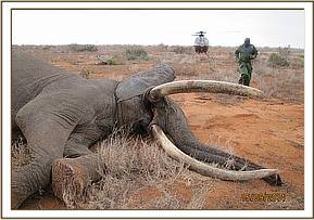 Several huge elephant bulls were sited within Satao area of Tsavo east with arrow wound injuries. The vet team together with two aircrafts that included a helicopter returned to the area and after a shot search several injured elephants were spotted.
