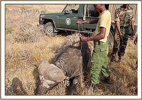 The breathing and pulse improved. Further administration of antibiotics, Vitamin B12 complex and more IV fluid therapy was instituted. The calf stabilized and was airlifted to Nairobi stockade for more intensive care where he recovered fully and joined other orphans in the nursery.