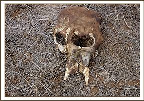 A third carcass belonging to an old carcass with bones scattered in the area but tusks intact, cause of death unknown.