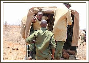 The team left and headed for Satao where a female elephant carcass on sternal recumbency was seen by one of their guests. The mono tusker was examined and nothing was observed. The lone tusk was removed for safe custody.