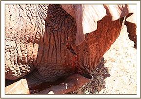 The vet worked fast with much help from everyone, even the Boskies charter pilot ensured he too was involved. A small hole in the left leg indicated an arrow wound, but there was nothing found deeper inside. On the top of his neck the big bull had a severe gash, and two more on his shoulder, most likely spear wounds from a vertical attack.