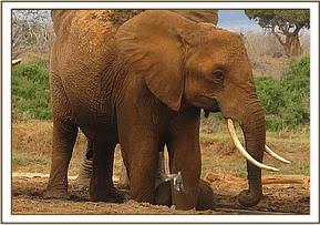 The Lodge Manager alerted the Kenyan Wildlife Service Vet attached to the Trust’s Mobile Veterinary Unit who organized the Voi Elephant Keepers to come and help extract the calf. The mother resolutely refused to be driven off, and in the end had to be tranquilized in order to allow the Rescue team access to the newborn baby.