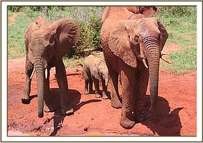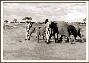 The next day the Keepers tracked her, and found her still on her own, still visibly shaken and still extremely distressed. However, they knew that Lissa’s family was in the area and that Mpenzi would gravitate back to them, and this she did, a day later. hoped that Lissa’s third calf Lugard would benefit from the extra milk Mpenzi had to give, and in so doing spare her the agony of engorged breasts. This obviously happened, for some months later the entire group turned up at the Voi Stockades for a visit, and looking relaxed and calm with them was Mpenzi, while Lissa’s three calves.