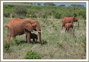 On the 19th November Julius from the Voi Unit went in search of Emily and her group, but in the process came across Orphan Lissa (now 22 years of age) with her three wild-born babies, the teenaged bull called Uaso, and Mpenzi (now aged 16 years) who had a week old newborn baby at her feet, Clearly this baby was her pride and joy, of whom she, and the others, were all being exceedingly protective. And so, this time round, Mpenzi, understanding the dangers of giving birth without the protection of others, has learnt a valuable lesson the hard way.
