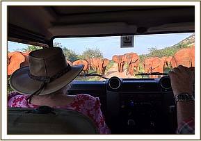 Having disembarked from the chartered plane imagine my surprise and delight to find the now wild ex-orphans gathered on the road to the camp to greet us. Since I have worked with elephants for over 50 years of my life I know they are capable of telepathy. There was Wendi whom we had raised from newborn still enveloped in her foetal blanket, Nasalot, Yatta, Mulika and their wild born offspring Yetu and Mwende, big bulls; Buchuma, Kamboyo, Madiba, Napasha, Kora and Rapsu, Challa, Chyulu and Kenze, pregnant Kinna, Galana who was in the company of a handsome big bull, Makena, Meibei, Naserian and Loijok ,Lenana. Ololoo, Lualeni, Orok, Ithumbah, Sidai, Sunyei, Taita, Tomboi and Zurura.