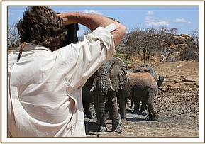 One of the wild big bulls, who witnessed this, was not at all happy, threatening to charge. Taru, (Angela’s son) then had to boldly drive the Landrover towards him and remain between him and the work in progress as Dr Poghorn operated on Mulika. All the other ex-orphans were deeply concerned, coming forwards to try and help their fallen comrade, whilst Yatta escorted Mulika’s baby Mwende away from the confusion along with her own baby. Sunyei let out a desperate cry of distress the moment Mulika collapsed, but even so, all had sufficient trust in their human family of Keepers to obey their tone of voice commands watching the proceedings with visible concern, crowding around a few paces away as Dr Poghorn set to work.