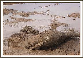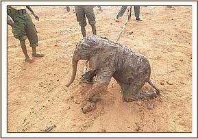 With the present ongoing drought conditions in the southern sector of Tsavo East National Park, drying waterholes can prove a death trap for tiny vulnerable elephant calves