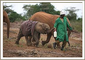 We called the newest arrival that had been flown into the Nairobi Nursery during the late evening of Sunday 8th June, “Namalok”, the Samburu term for “sweetie”, since she originated from Samburu country and certainly was a sweetie, despite being severely malnourished and enfeebled through milk deprivation, obviously having been minus her mother for some time. The second orphan never did arrive. When the KWS ranges tried to capture it, it managed to escape into thick bush and to date has not been found.