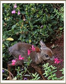 These antelopes feed on leaves, flowers and soft greens, being most active at night, whilst similarly to dik-diks they also scent-mark their boundaries with secretions from their preorbital glands and have small dung piles on the periphery of the territory. A single calf is born to any female suni, which is born weighing about two pounds, after a gestation of 183 days. Easy prey for numerous predators suni antelopes live a reclusive life inhabiting forest areas, such as the Nairobi National Park, whilst luckily being well camouflaged with the ability to keep very still to avoid detection. It is extremely rare to ever see a Suni baby in the wild.