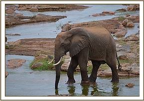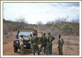 Finally, along the northern bank of the Athi River, the bull was sighted again, painfully soothing his wounded leg in the cool waters of the river. Although sighted late in the evening a report was immediately made to the Dr. Poghon, who arranged to fly up from Voi to Kaluku in a KWS aircraft early the next morning.