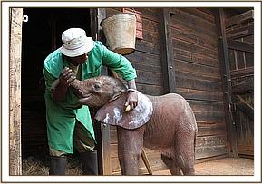Here at the DSWT Nursery in Nairobi National Park, little Ajabu, who was rescued as young as just a day old from Tsavo East National Park, is showing promising signs, settling well into her new orphan family and loving the care and attention of her Keepers