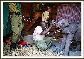 The first call to be received early on the 8th was from Ian Craig of the Northern Rangelands Trust concerning an orphan rescue at Sera Conservancy in Northern Kenya. The young 6 month old calf in question had fallen down a man-made well, which was discovered by conservancy rangers. The rangers successfully extracted the abandoned calf from its imprisonment, but it is unknown how long the baby elephant had been stuck in the well, all the while submerged up to eye level with only the trunk available to breathe. At the Nairobi Nursery plans were immediately made to send a rescue plane with a team of Keepers to the Sera airstrip.