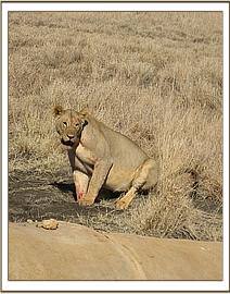 The calf was a newborn female, the umbilical cord still fresh. It had a deep wound around the neck where the lioness had held it, and although initially it responded well to its bottled milk feeds, after a day or two it passed away, succumbing to the trauma and shock of its brutal entry into the world. However, this demonstrates that even a lion can sometimes exhibit compassion!