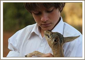 Oomphy our orphaned tree hyrax, who is thriving in his new adopted family and Geri our sprightly Thompson’s Gazelle are inseparable