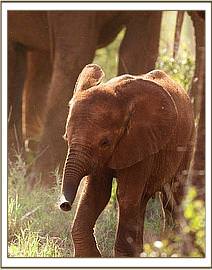 Little Eve was born either during the night of the l0th December, or the early hours of the morning of the 11th, Emily having been spotted by the Keepers standing under a tree not far from the Voi Elephant Stockades during the afternoon of the l0th, attended by some of the female members of her unit, as well as two wild adult midwives, who firmly rejected any closer involvement of the human Keepers. The next morning the Keepers set out early again to try and find Emily, suspecting that her time to give birth had come, and sure enough, wobbling around on unsteady legs was the newborn calf, fussed over and being guided along by the host of eager little “Nannies” , as well as the two wild anti-human elephant Midwives who were still very much in attendance. Once again, the Keepers were firmly dispatched, even though Emily and the orphans would have enjoyed their company and probably wanted to proudly show off the latest addition to their family unit.