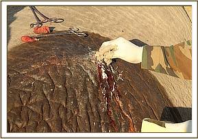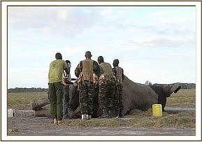 It’s been just over two months since the DSWT/KWS Amboseli Mobile Veterinary Team headed by KWS Field Veterinarian Dr Njoroge, treated ‘Tim’ for a deep spear wound narrowly missing his hip bone. With the support of the DSWT helicopter this magnificent 45 years old elephant was successfully treated on the 10th November for the wound on his rump which was septic and required immediate attention. After a 25 minute operation Dr. Njoroge was confident this mighty monument would have a good chance of a full recovery.