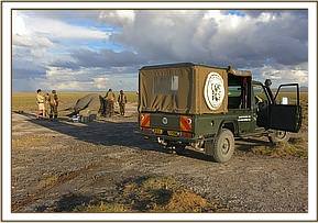 It’s been just over two months since the DSWT/KWS Amboseli Mobile Veterinary Team headed by KWS Field Veterinarian Dr Njoroge, treated ‘Tim’ for a deep spear wound narrowly missing his hip bone