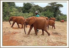 On the 18th of July just before dawn he was once again loaded into the all too familiar elephant moving truck and transported the three and ½ hours back to Nairobi. He travelled well with his favourite Keepers and appeared calm for the duration of the journey. What was remarkable was how vividly he remembered the Nursery, instantly familiar with his old stockade, the daily routines and the individuals, both two legged and four. He seemed extremely content back in their midst and very soon was leading the group.