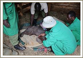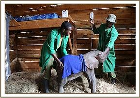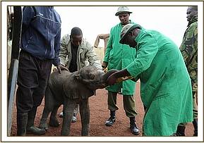 The KWS rangers took the calf to the lower Imenti KWS headquarters where he spent the night due to the late hour of his rescue. Overnight he was not fed any milk, only water. We believe Bocha was just one week old, and he was given the name Bosha, which in the Orma language means Gods creation, but is also the name of the area near to where he was discovered.