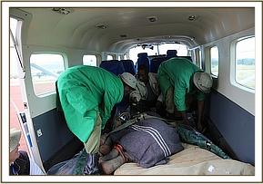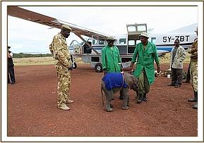 Bocha was reported to the DSWT late in the evening of the 28th of March. With no time left to deploy a rescue team from the Nairobi Nursery that evening, the rescue took place early the following morning and the little calf was flown out of the Lewa airstrip, the closest airstrip to where he was rescued and brought to Nairobi.