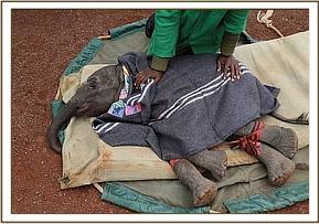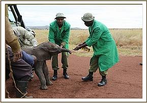 This tiny calf was found at 1pm walking alone on the roadside within the Kangere area in the Meru district. The calf was looking very confused and extremely hungry when community members discovered him. By the time the KWS rangers received the report of the calfs plight the community had sadly already well-meaningly fed the ravenous calf cows milk, which is extremely dangerous for any baby elephant.