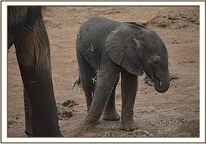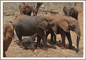 Thankfully Emily’s herd have remained on a protected Conservancy throughout the dry season along with over 200 wild elephants, where water and food has remained abundant despite the drought conditions elsewhere, and their progress has been monitored and checked regularly, so Thor’s first few weeks have been closely documented. He is a bundle of joy, full of energy and requires full time supervision from the diligent Nannies Seraa and Ndara, and Mweya, all of whom we hope will have their own wild born calves soon! Thor has been born into a loving extended family, surrounded by warmth and love, and a couple of little playmates in the form of Safi and Inca in particular.