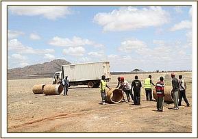 Due to the size and difficulty of removing the piping it has just been left to litter the landscape, but the David Sheldrick Wildlife Trust is now taking action and has received permission from the KWS in Tsavo East to dispose of the debris by employing members of the surrounding local communities.