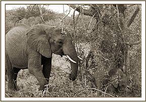 Edie was estimated to have been born in April 1999, and was rescued as a 4 month old calf from a well on the Namunyak Group Ranch North of Lewa Downs. Her family had struggled all night unsuccessfully to try and retrieve her, but had to leave when tribesmen and their cattle turned up. For many weeks after her rescue Edie suffered from deep depression grieving for her lost elephant family, and was very sore and bruised from her fall, able only to lie on one side of her body for well over a month. Tender loving care from both the Keepers and the other elephants in the David Sheldrick Wildlife Trust's Nairobi nursery soon made her happy again and she has never looked back. Throughout her years in Tsavo (once she was over two years old) at the Voi Unit as they all grew older and fraternized with the wild community more and more it became evident that she attracted the attention of many wild bulls, much more so than any other of the female orphans, so quite obviously Edie is considered extremely attractive amongst the elephant community.