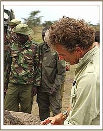 In less than an hour the helicopter was on site with the rear doors removed - Dr Poghon sitting behind the DSWT pilot Humphrey Carter, dart gun ready.
