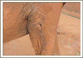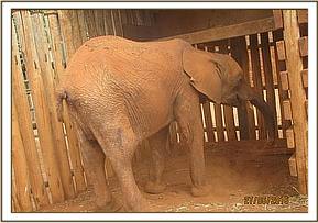 Thankfully, the wounds on her back and hind legs were not life threatening and she was not seriously harmed. She was overjoyed when she saw her keepers and was fed some milk whilst out on the Irima plains. Thereafter she clung to her Keepers like glue, walking back alongside them and another vehicle to the Voi stockades, a journey, as the crow flies, of about 25 kms. The Vet attached to our Tsavo Mobile Veterinary Unit, Dr. Poghon was on hand to treat her wounds, and she spent the rest of the day feeding in the comfort of her stockade.