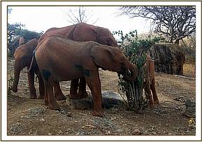 During the late afternoon of the 24th of June, Embu was having a jovial time with her dependent friends who had encountered a wild elephant herd that afternoon, when she became entangled up with them and a particular older female she had taken a familial shine to. The Keepers called the dependent orphans to move on with them, who normally readily return to begin the journey back to their Stockades, but on this occasion Embu was encouraged to leave with the wild herd who prodded her to come with them, and who would not allow the Keepers to approach close enough to retrieve her, still besotted with the older female; the herd were determined to keep Embu within their midst. As the herd moved off with Embu, the Keepers followed from a safe distance, hoping that Embu would eventually lag behind so that they would be able to reclaim her. However, they were unsuccessful and Embu remained out overnight in the custody of this wild herd.